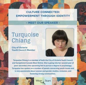 Soroptimist International of Canada West Online is proud to announce that our member Turquoise Chiang was invited by Wear2Start to speak at its upcoming event “Culture Connected: Empowerment Through Identity” on June 18, 2025. The message of the event is to tell the public whether your identity is rooted in ancestry, lived experience, language, gender, creativity, or chosen family, you are encouraged to show up fully and proudly. Through stories, connection, and celebration, the speakers will take audiences to explore how embracing who we are fosters belonging and drives change.